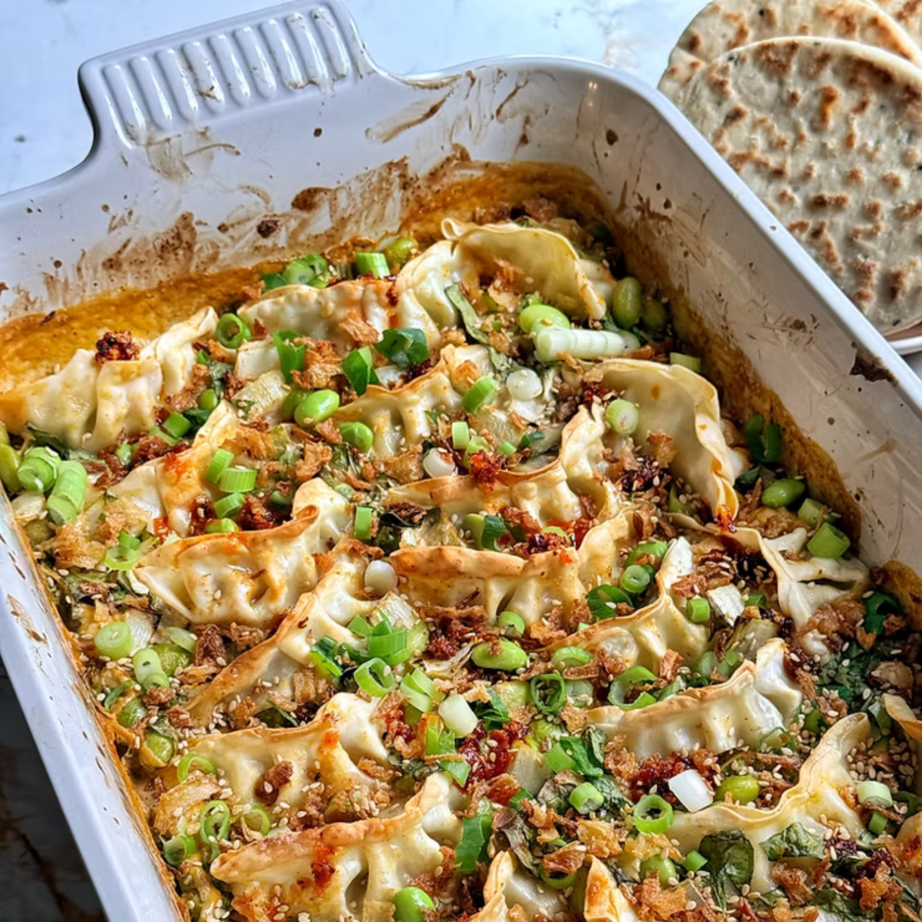 Dumpling ovenschotel met paksoi en rode curry