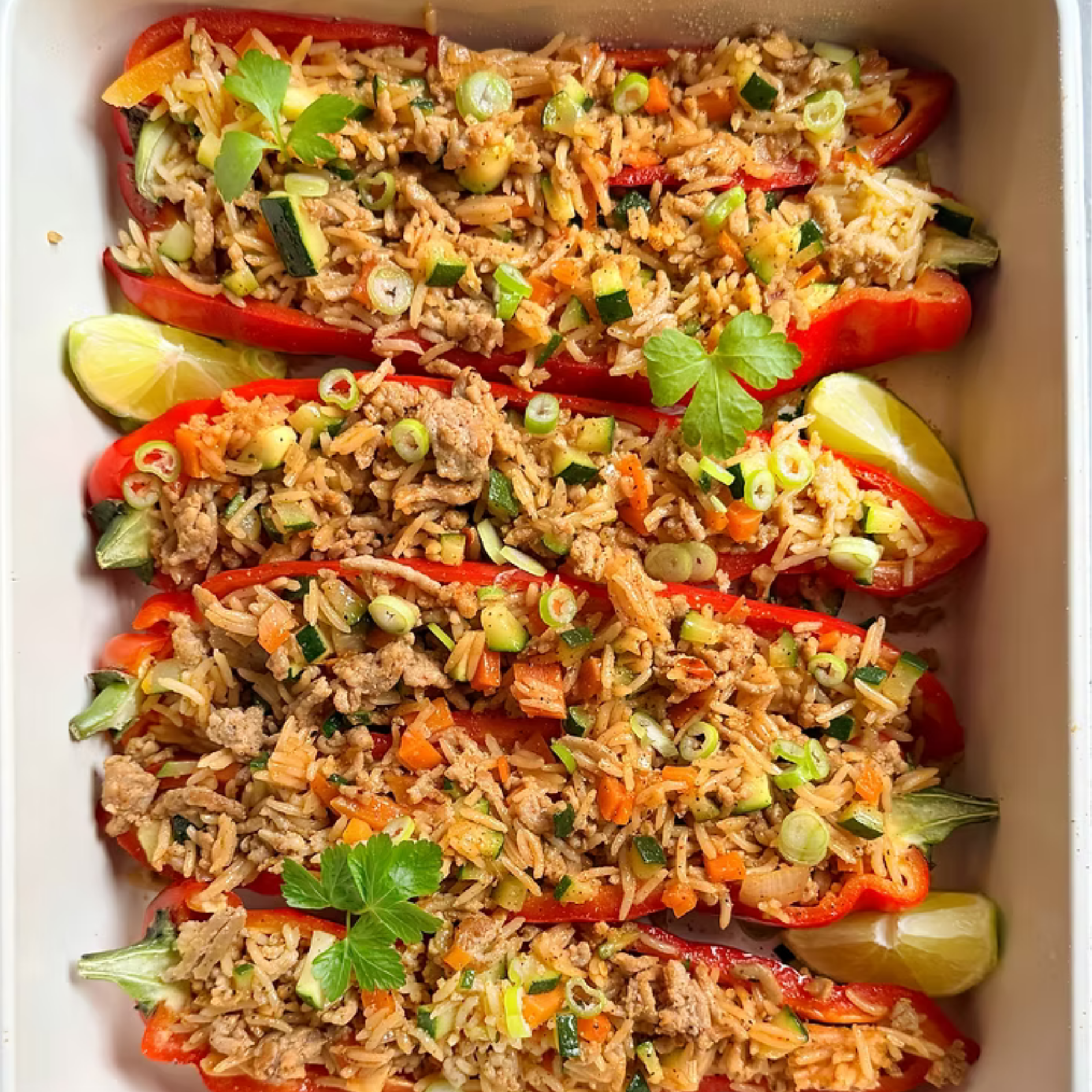 Gevulde puntpaprika met gehakt en rijst